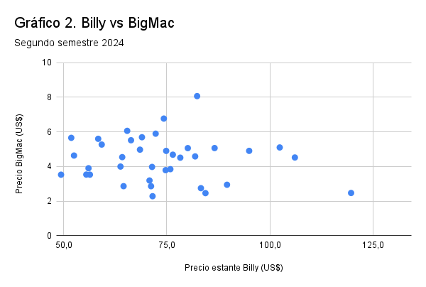 Fuente: Los datos Índice Big Mac provienen del dataset de The Economist. Índice Billy es elaboración propia con los datos de las páginas web Ikea.
